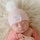 ilybean Little Sis with White Pom Pom Newborn Girl Hospital Hat - White, Pink and Striped Hat